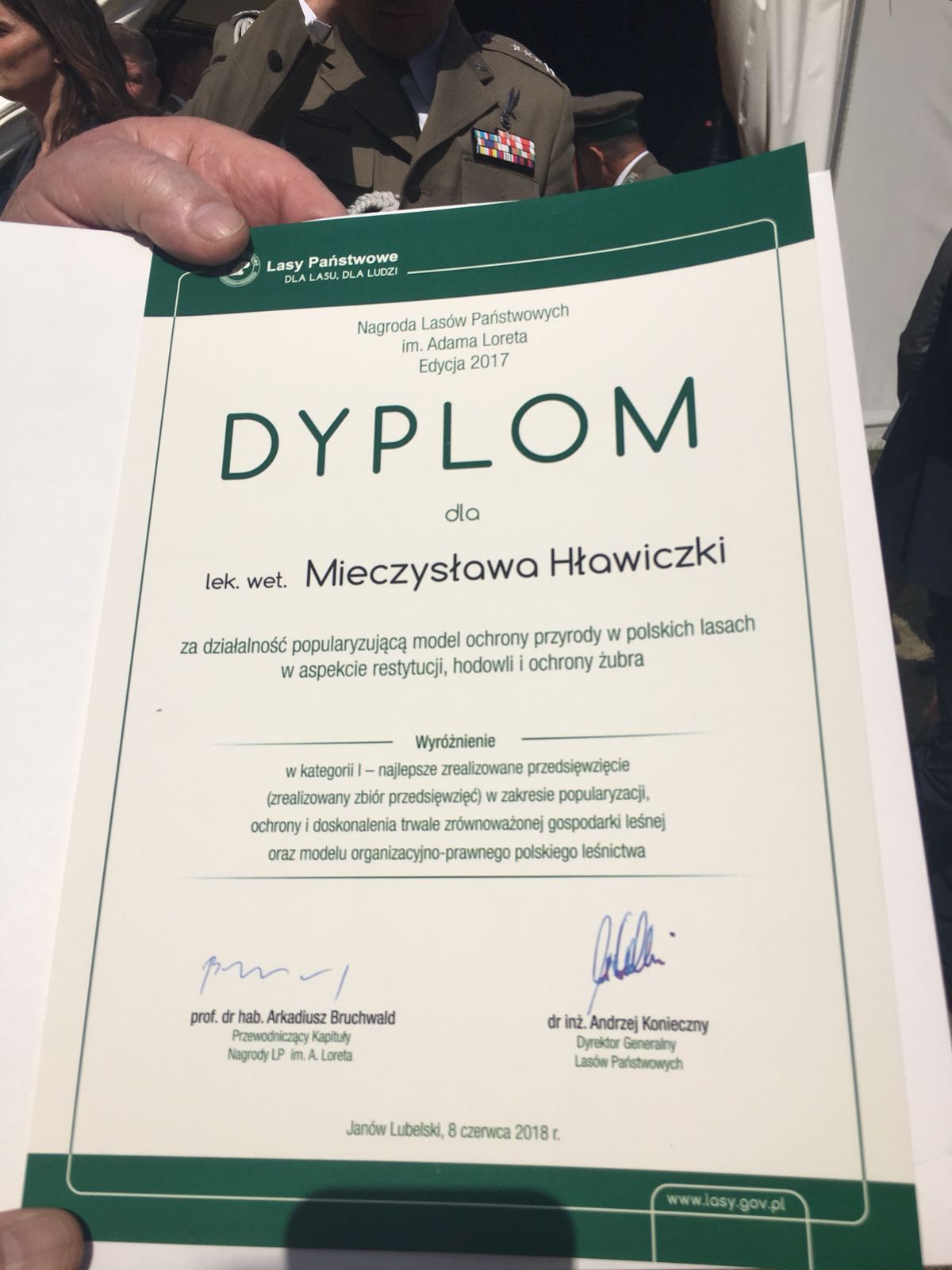 Miło nam poinformować, że członek honorowy SMŻ lek. wet. Mieczysław Hławiczka został w tym roku wyróżniony w I kategorii za działalność popularyzującą model ochrony przyrody w polskich lasach w aspekcie restytucji, hodowli i ochrony żubra.